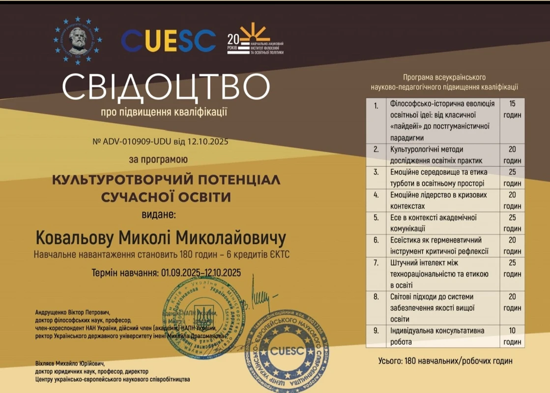 Науковий і професійний доробок: