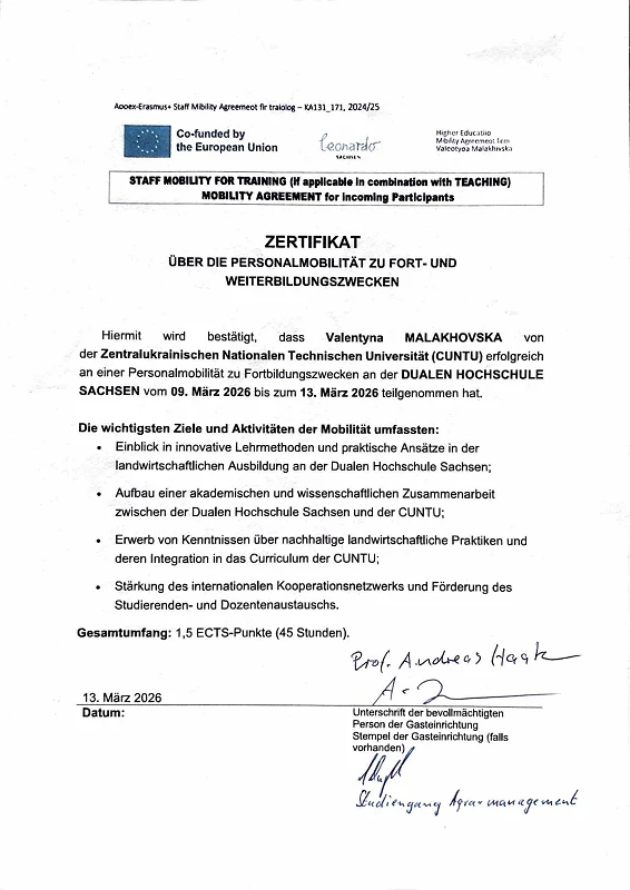 - Центральноукраїнський національний університет, спеціальність: «Агрономія», кваліфікація «Вчений агроном»,2017р.