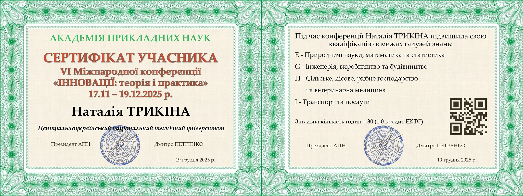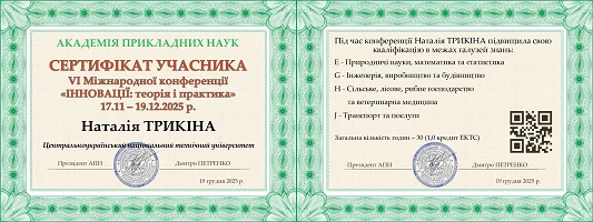 - Свідоцтво про реєстрацію авторського права на твір №134794, дата реєстрації 31.03.2025р.