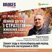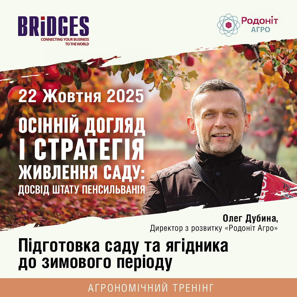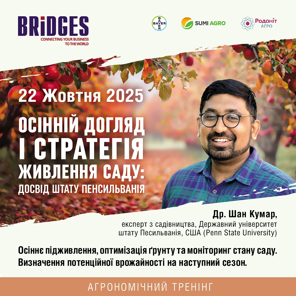 Доцент кафедри загального землеробства взяв "Осіннє підживлення, оптимізація ґрунту та моніторинг стану саду. Визначення потенційної врожайності на наступний сезон", організоване компанією BRIDGES.