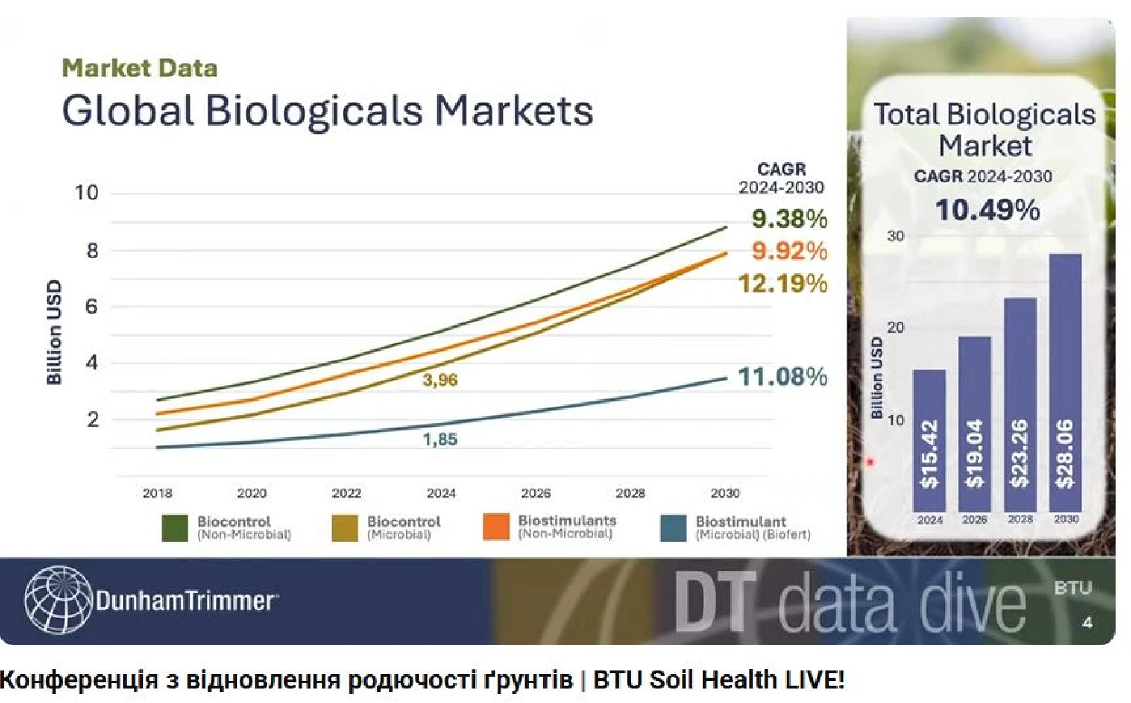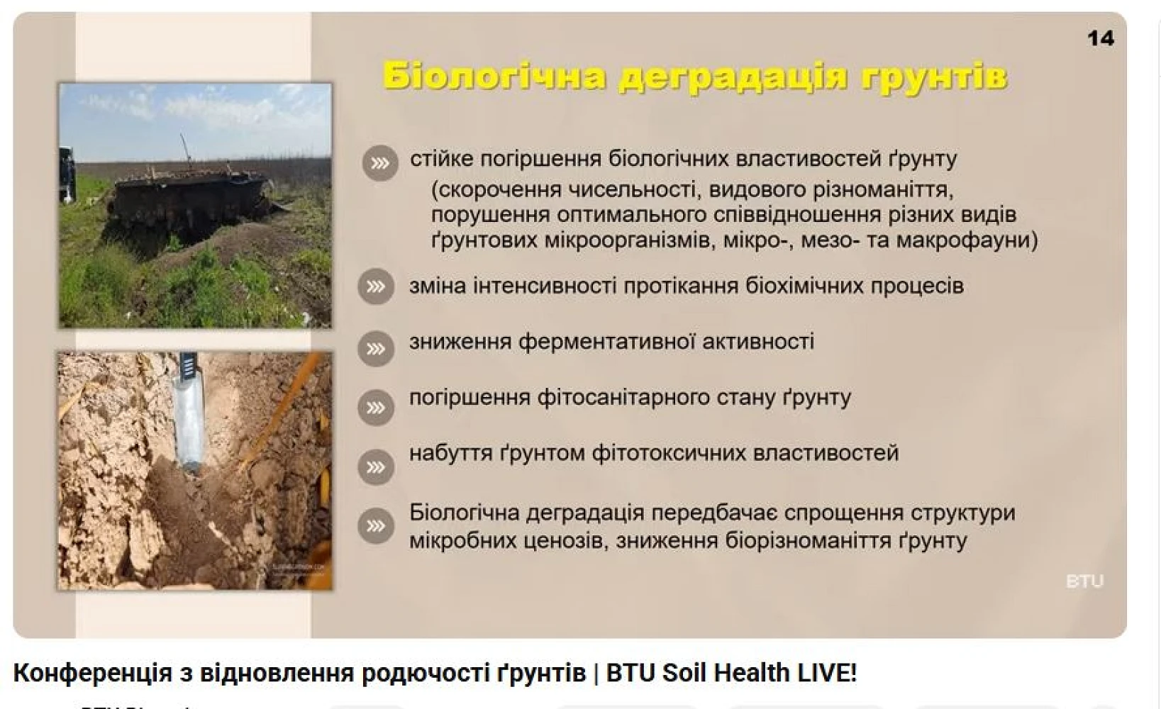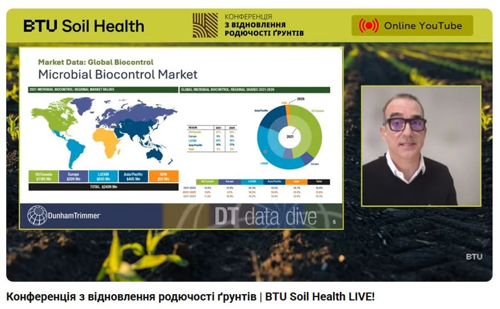 12 грудня 2025 року в онлайн-форматі відбулася VI Міжнародна конференція з відновлення ґрунтів на тему «Здорові ґрунти – здорове Агро», яку традиційно організовує Українська біотехнологічна компанія (BTU), що виробляє мікробні та ферментні препарати для сільського господарства. Захід був присвячений актуальним питанням збереження та відновлення ґрунтового здоров’я як ключової умови сталого розвитку аграрного виробництва та продовольчої безпеки, об’єднанню науки, освіти, бізнесу та влади для пошуку практичних рішень щодо збереження та відновлення родючості українських ґрунтів, зокрема після наслідків війни, з фокусом на свідоме управління та стійке сільське господарство.