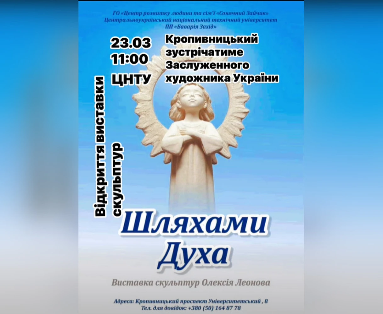 24 березня в бібліотеці Центральноукраїнського національного технічного університету відбулося урочисте відкриття виставки скульптур «Шляхи духу», гостями якої стали студенти першого, другого та третього курсів спеціальності «Агрономія». Експозиція представила роботи Олексія Леонова — відомого українського скульптора, чия творчість визнана в усьому світі завдяки філософській глибині та духовній тематиці. Із 2005 року митець провів понад двісті персональних виставок у різних країнах, а його скульптурні роботи сьогодні прикрашають приватні та музейні колекції на різних континентах.